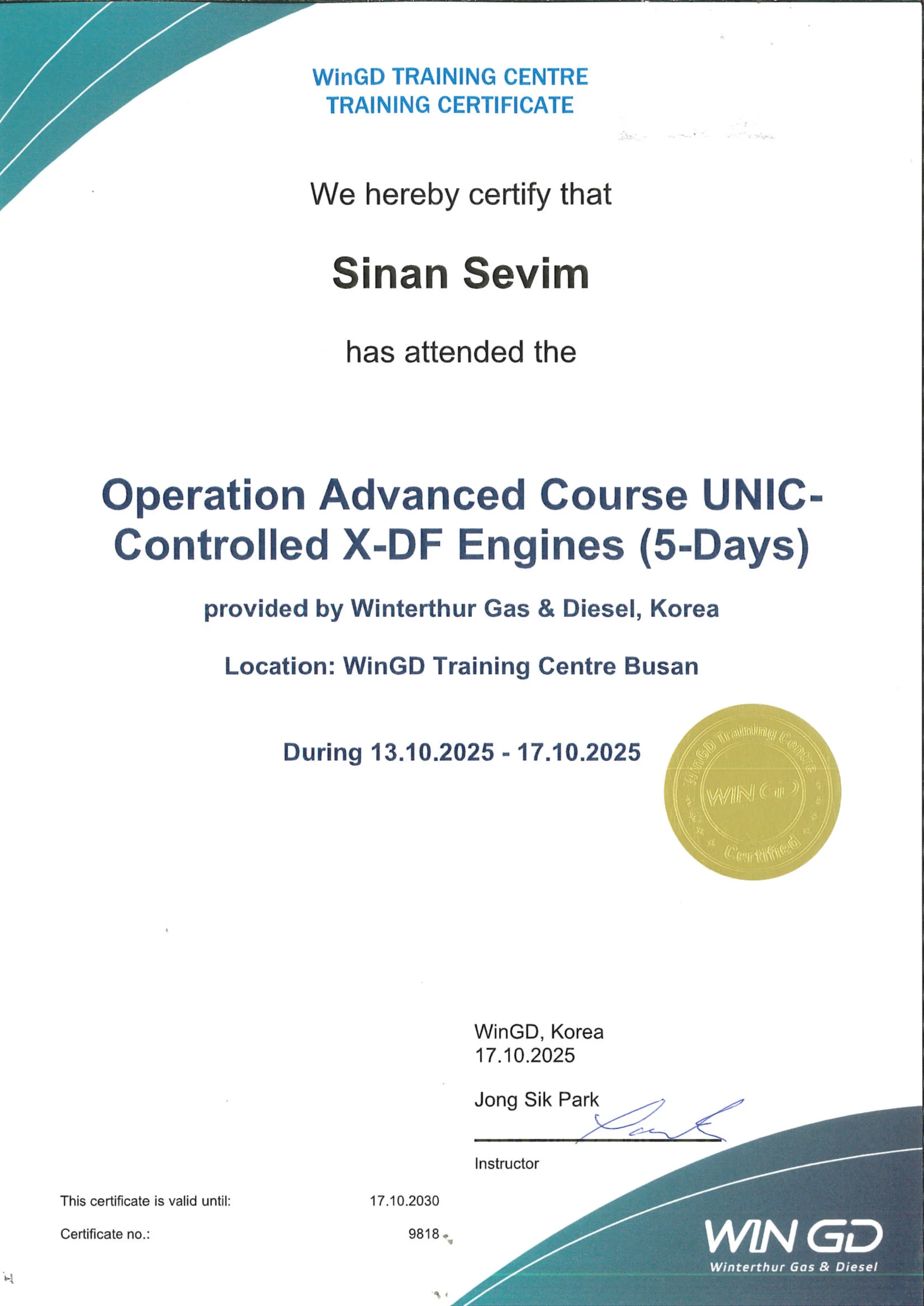 Operation Advanced Course UNICControlled X-DF Engines